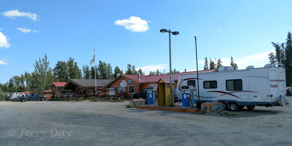 A gas station, gift shop, and restaurant are available at the entrance to the campground. A local tire repair service is available nearby. Several gas stations, restaurants, grocery stores, visitor information and some automotive and RV services are available nearby in Watson Lake (14 miles / 23 km).