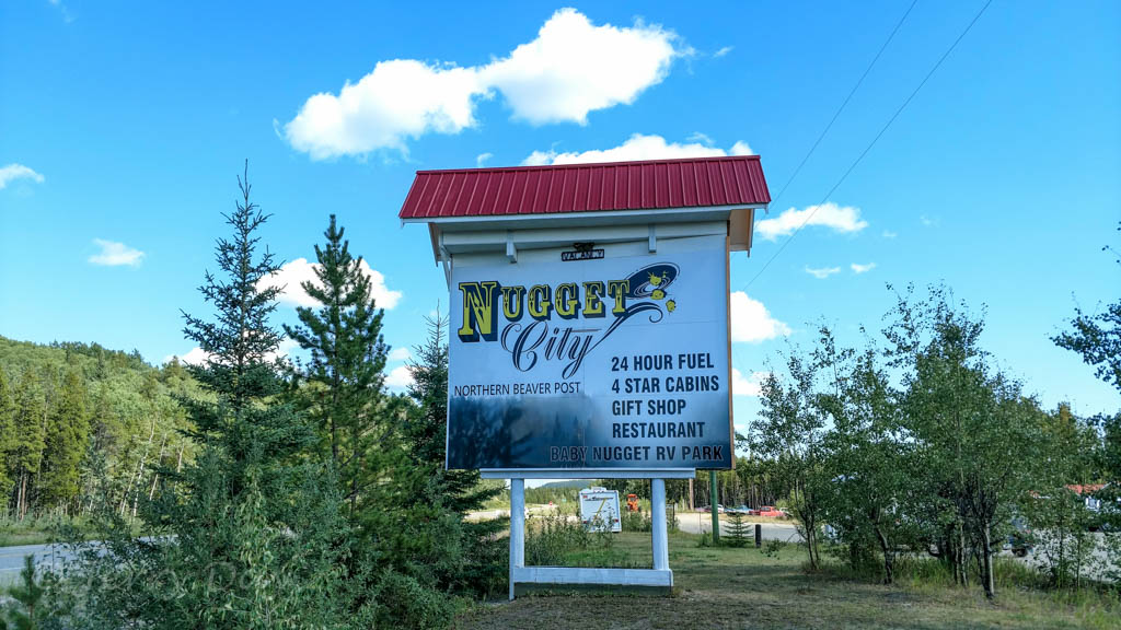 The Baby Nugget RV Park is a quiet, forested, big-rig friendly campground just off the Alaska Highway, very close to the Cassiar Highway (BC-37) junction and about 14 miles west of Watson Lake, Yukon Territory, Canada. Conveniently, a gas station, gift shop, and restaurant, all part of family owned ‘Nugget City’, are at the park entrance. This campground is a good place to stop while traveling the Alaska or Cassier Highways.