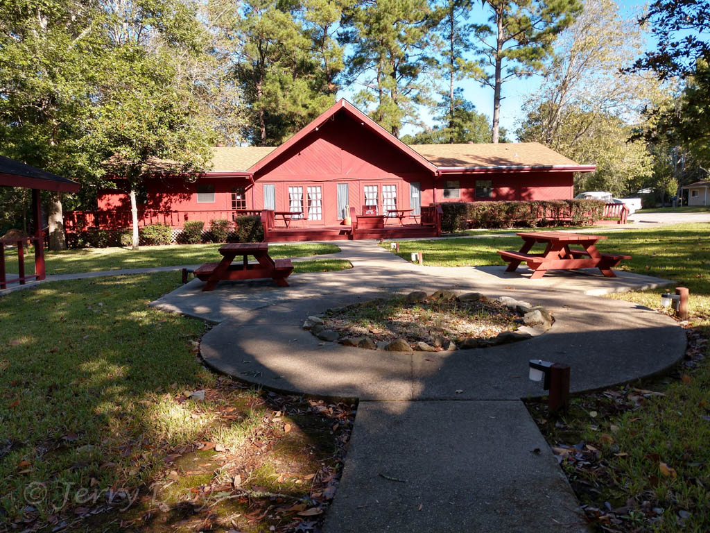 The Escapees park is located in a scenic, semi-forested rural area about six miles from Livingston, Texas. The campus and campground sections are nicely landscaped with mature trees and many nice landscaping touches. The campus feels very peaceful and park-like.
