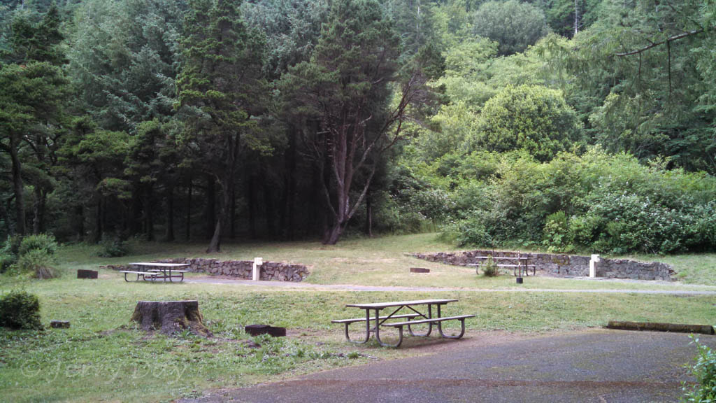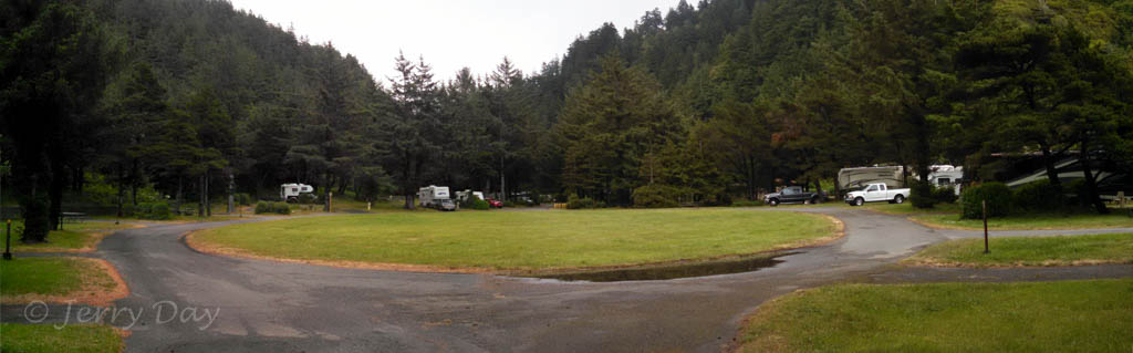 The campground has only very basic amenities, including water and electric partial-hookups, restrooms and showers. A market, gas station, hardware store, restaurants and other services are available nearby in Port Orford. A wider range of shopping and services are available further along the coast in Gold Beach, Brookings or Bandon.