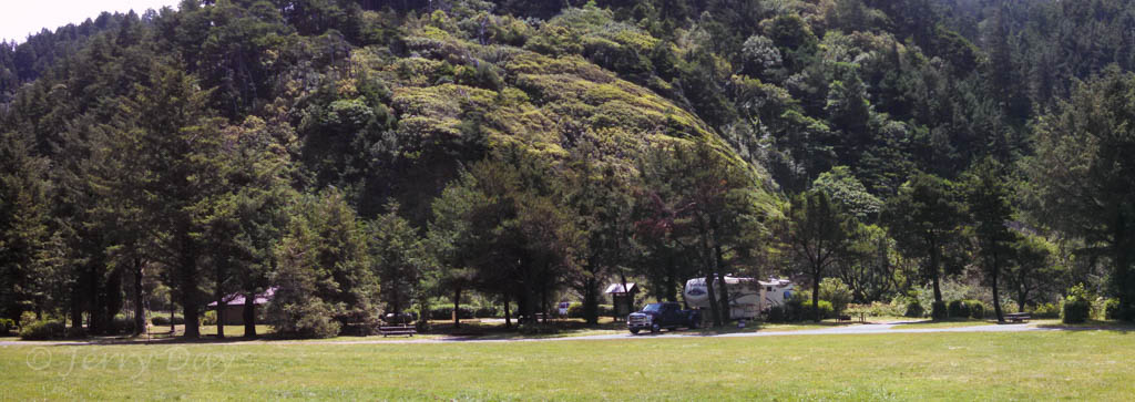 We stayed at the Humbug Mountain State Park Campground for seven nights in early June, 2016. Booking early, we secured one of the few pull-thru water and 50 Amp electric sites. This was our first visit to the park and we were impressed by how clean and well maintained the grounds and facilities were.