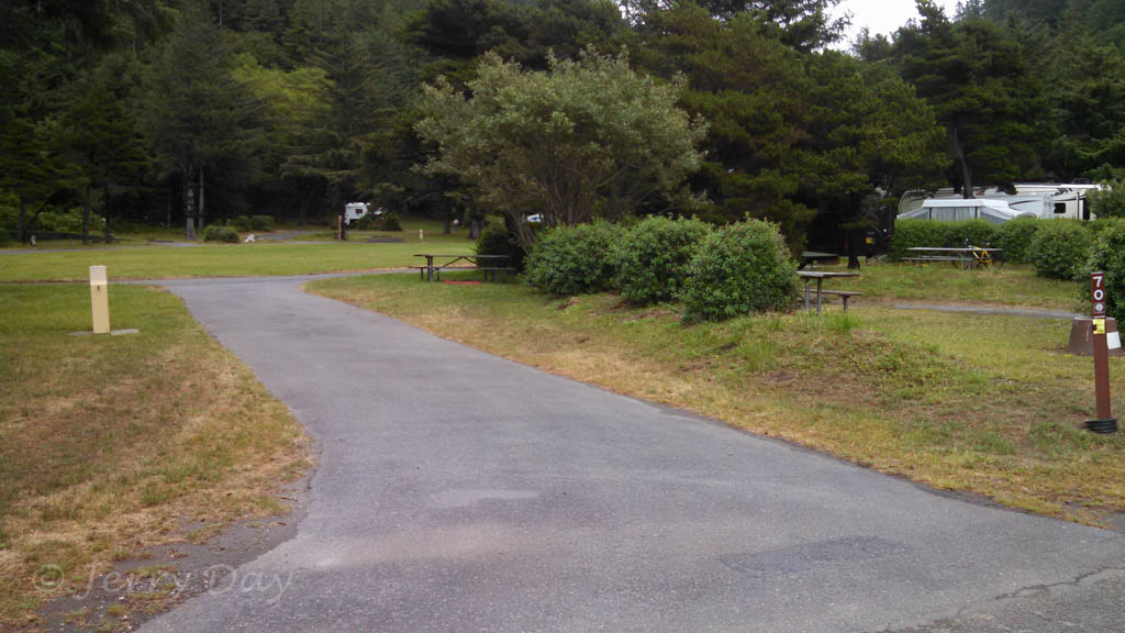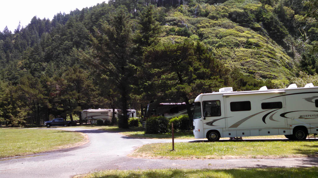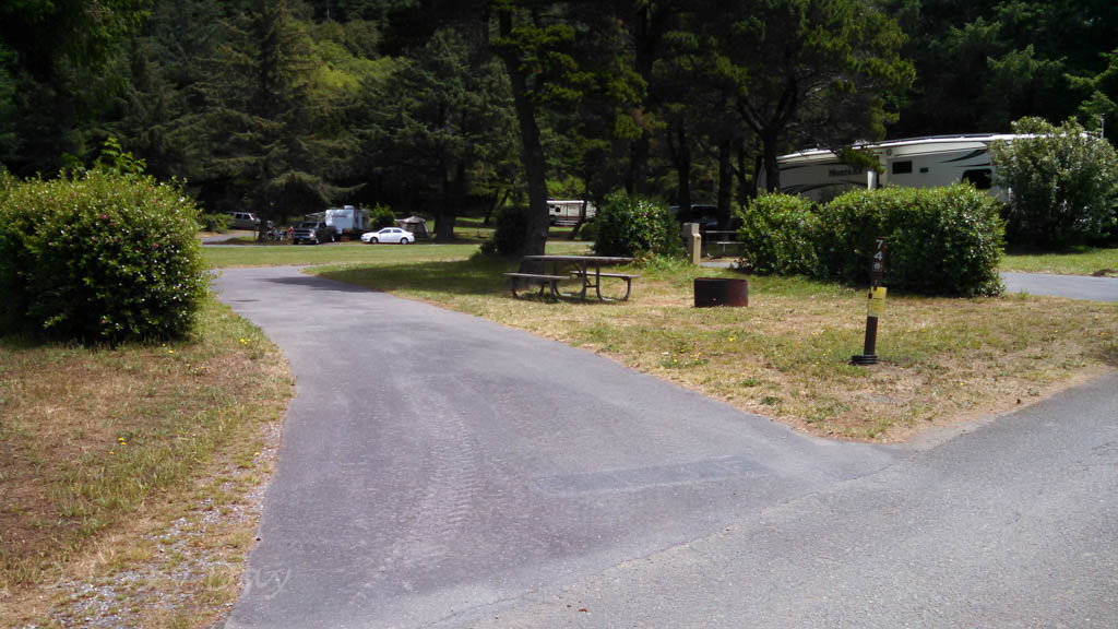 The campground is easily accessible from Highway US-101. The main road through the park will accommodate large rigs, but is narrow, winding and feels crowded should oncoming vehicles meet. Other lanes are one way and are more comfortable for large rigs. The campground has several campsites reserved for the handicapped, as well as facilities with handicapped access.