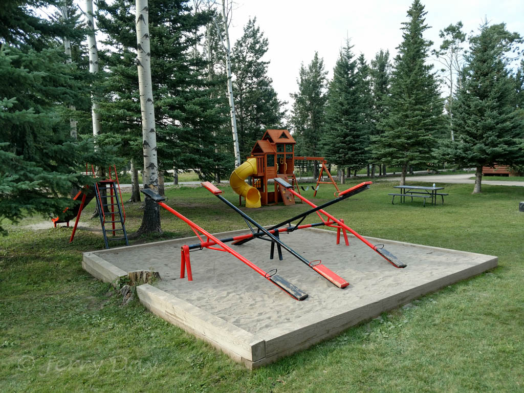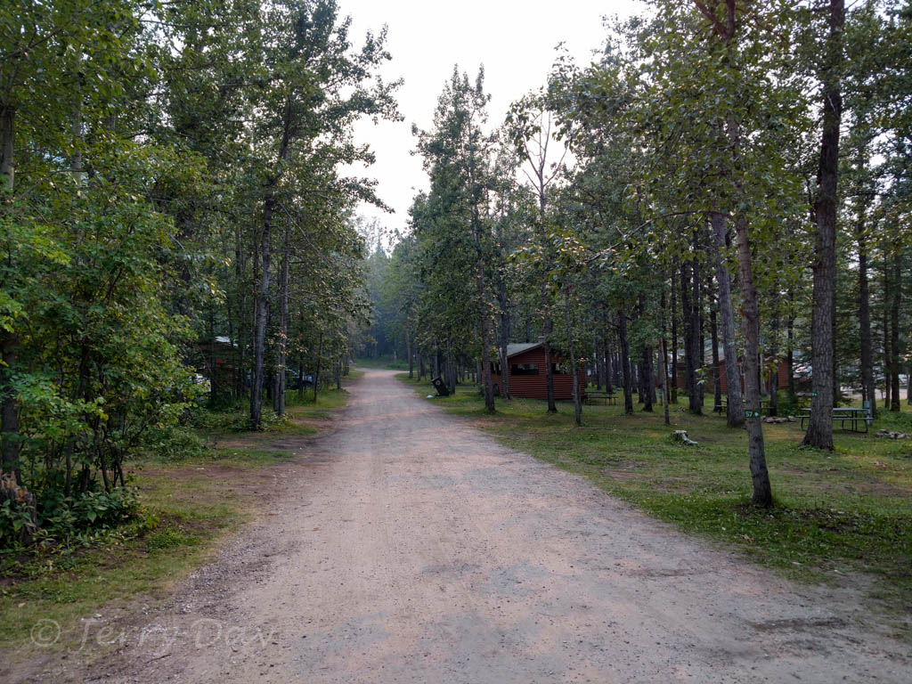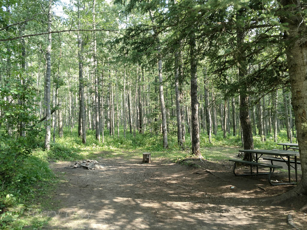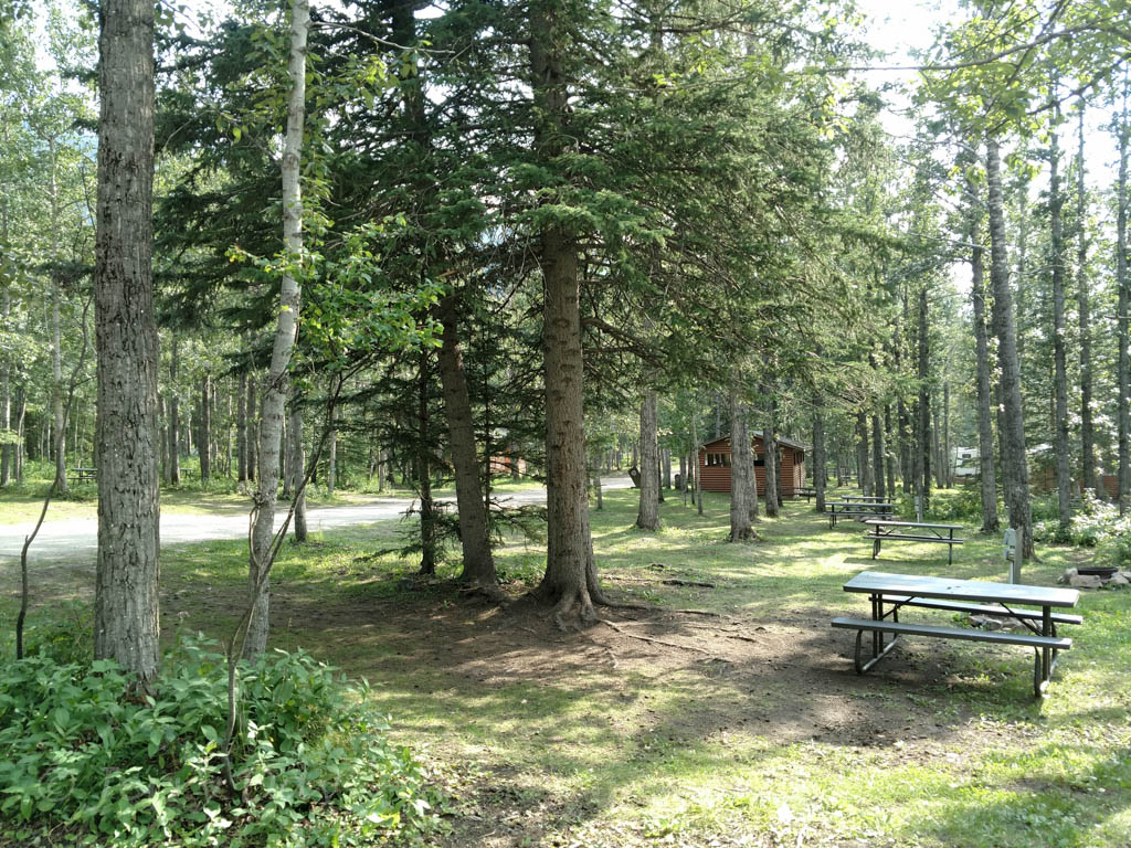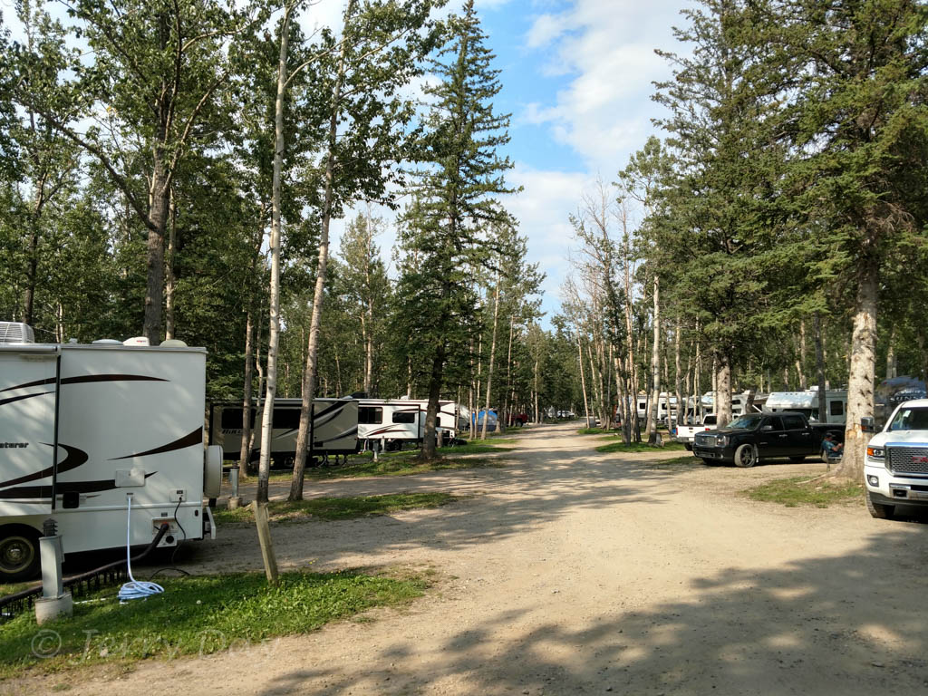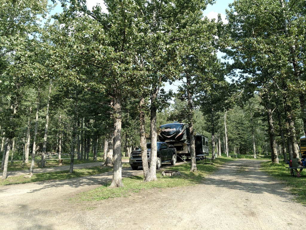 The campground is easily accessible from the Yellowhead Highway, AB-16. Lanes in the campground are reasonably well-maintained gravel. The park has both pull-thru and back-in sites and can accommodate large rigs. Some sites are tight for large rigs to maneuver into or out of due to trees or other obstacles. The campground facilities have some provisions for Universal access.