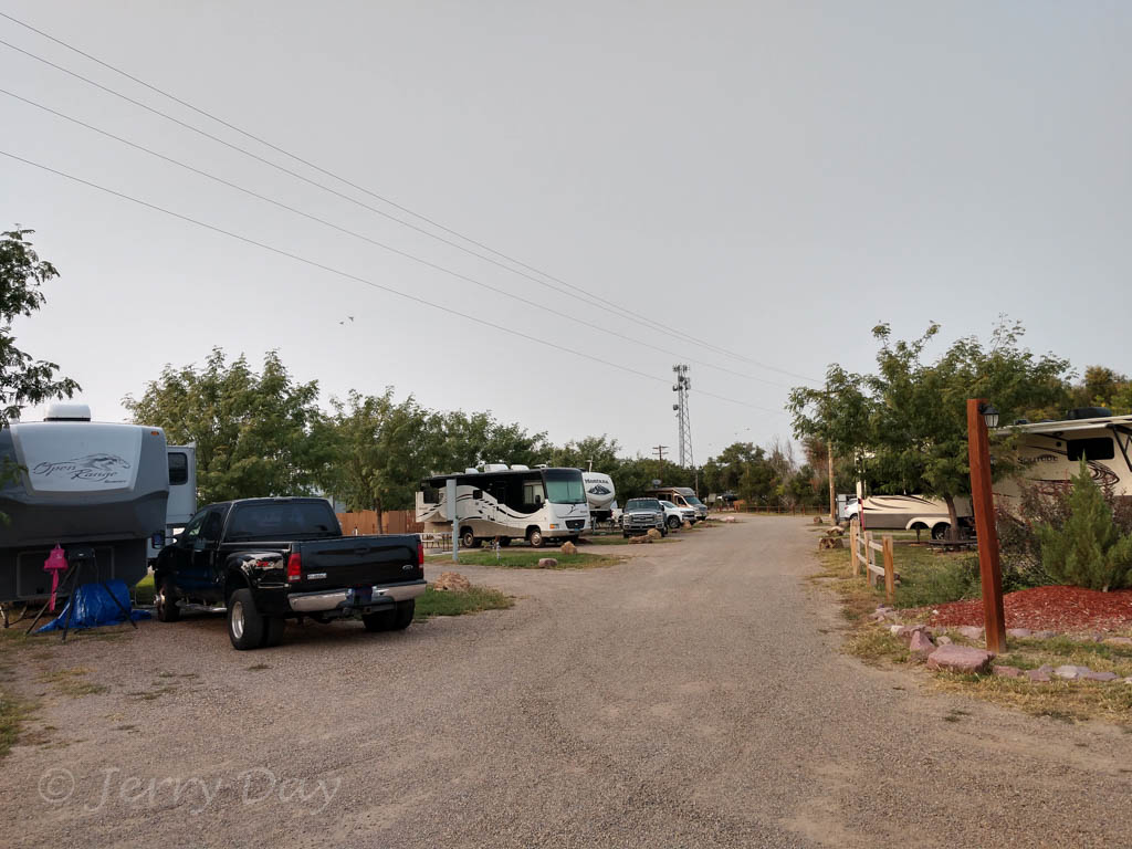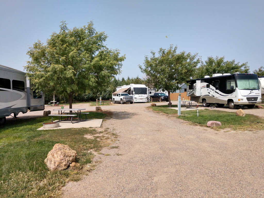The campground is easily accessible from highway US-50 via paved streets. Lanes in the park are reasonably well-maintained gravel. The park has mostly pull-thru and a few back-in RV sites and can accommodate large rigs. The campground facilities have some provisions for Universal access. Position of large boulders at entrance/exit of some pull-thru sites requires caution to avoid hitting with a large rig.