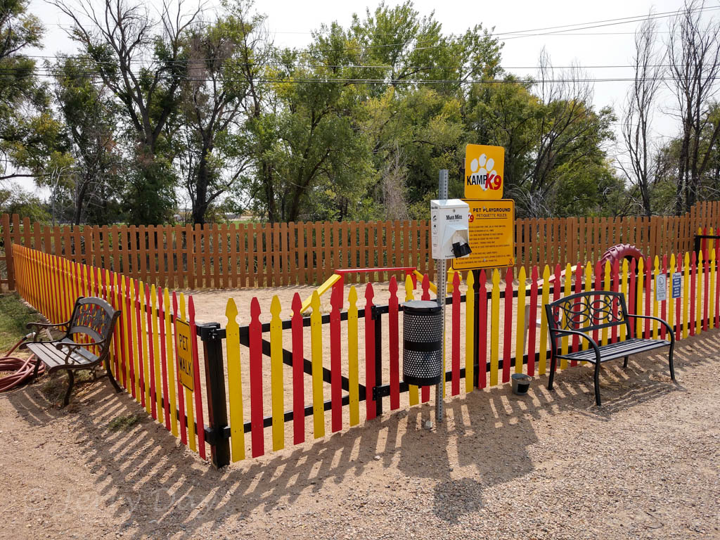 The campground is pet friendly, with cleanup stations and a K9 Kamp enclosed off-leash pet run. The campground is large enough for a fair walk with your pet.