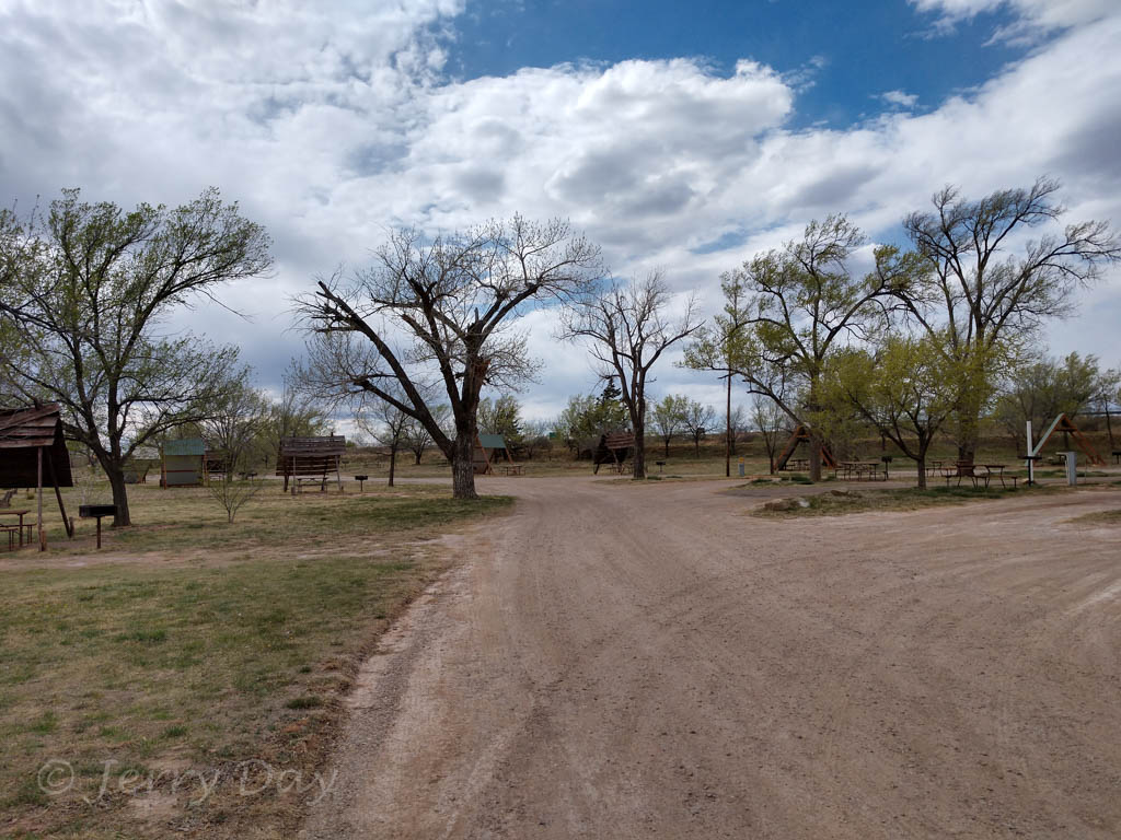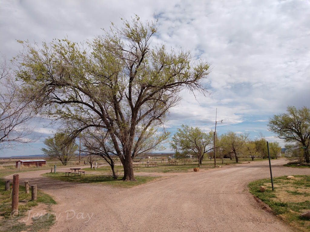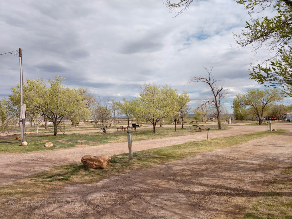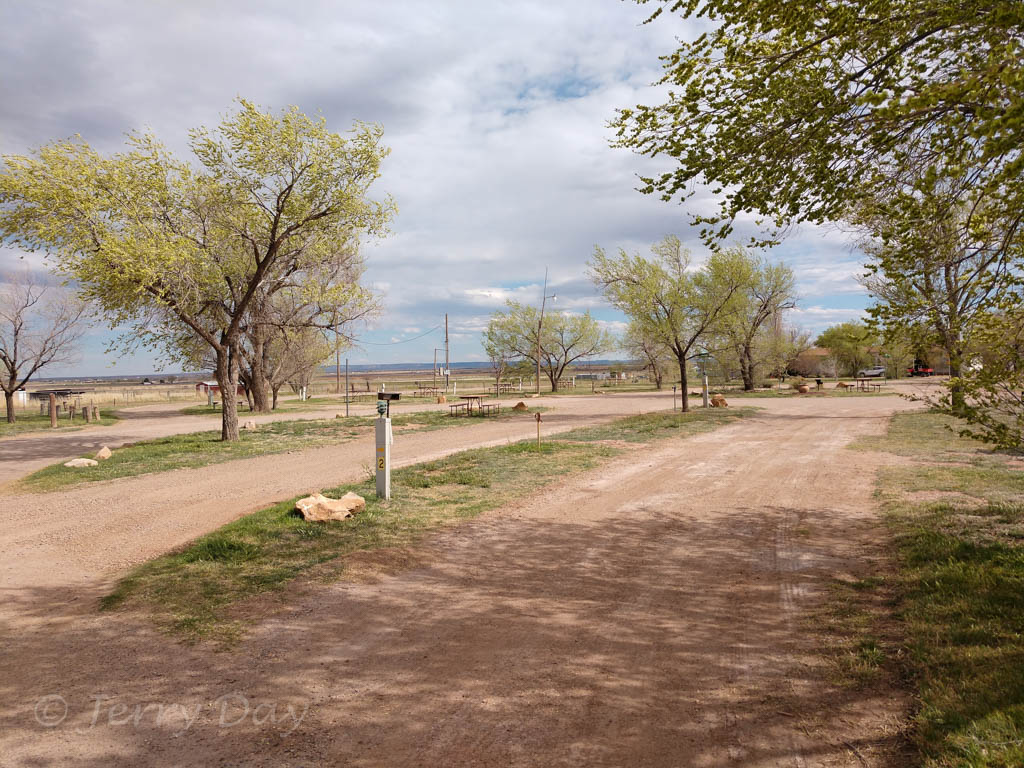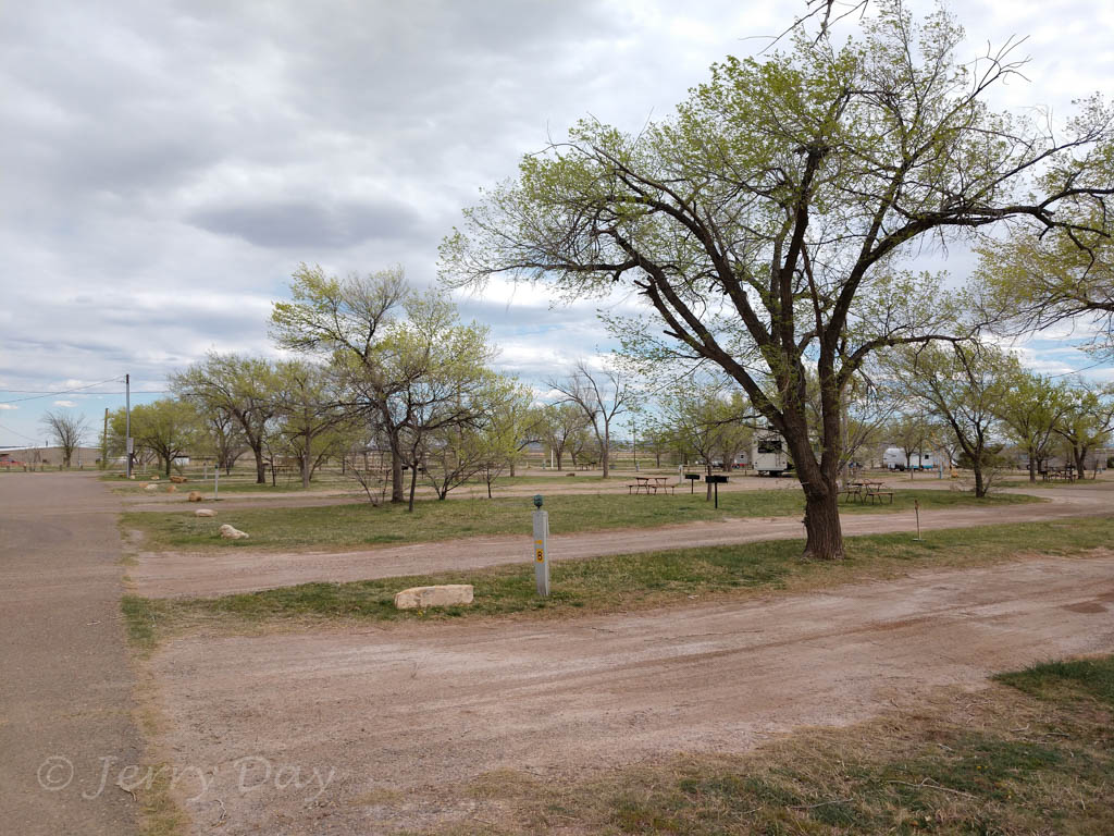 The campground is open and park-like with many shade trees. The park is located in a rural area outside of town and features vistas of Tucumcari Mountain, rolling grassland, and irrigated fields.