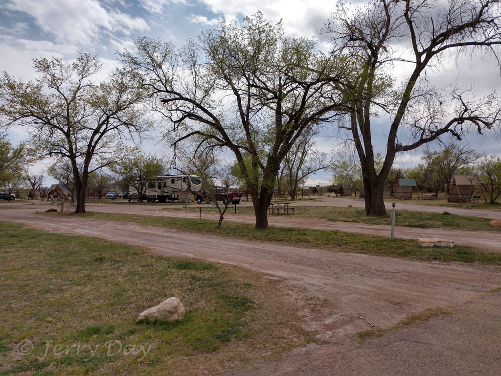 The campground is easily accessible from Interstate I-40 via paved streets. Lanes in the park are wide and reasonably well-maintained asphalt or gravel. Most, if not all, RV sites in the park are pull-thru and can accommodate large rigs. The campground facilities have provisions for Universal access.