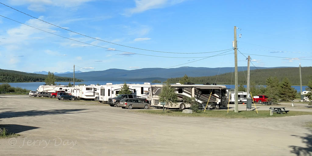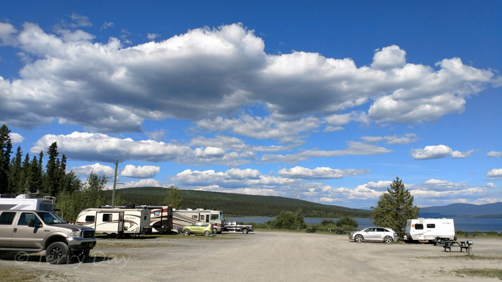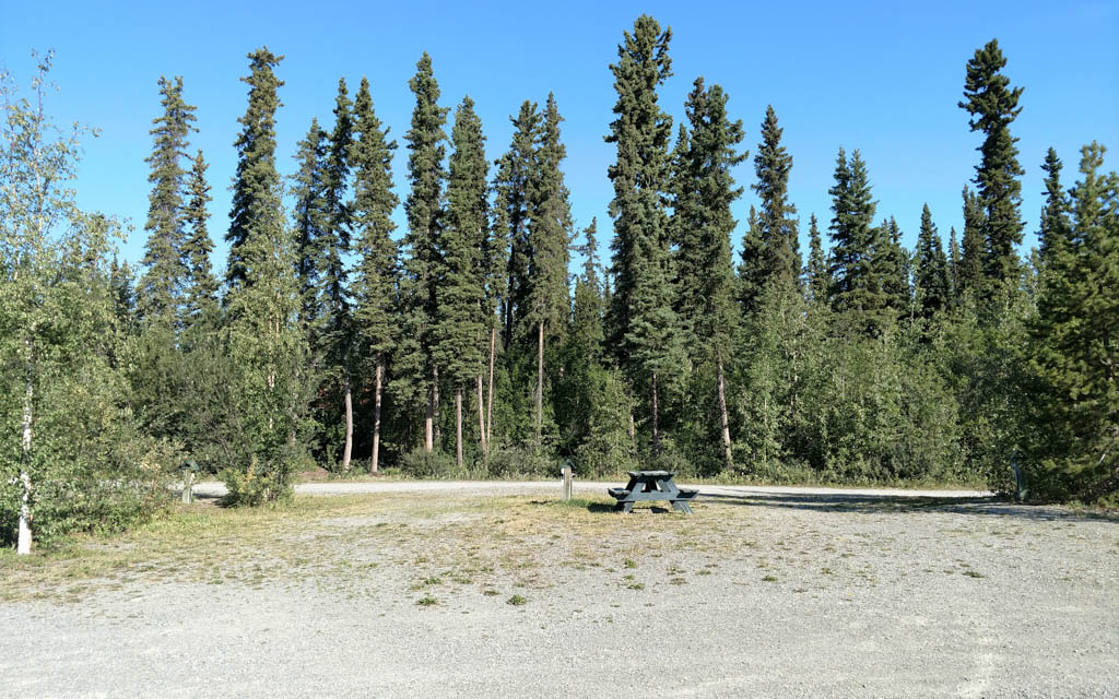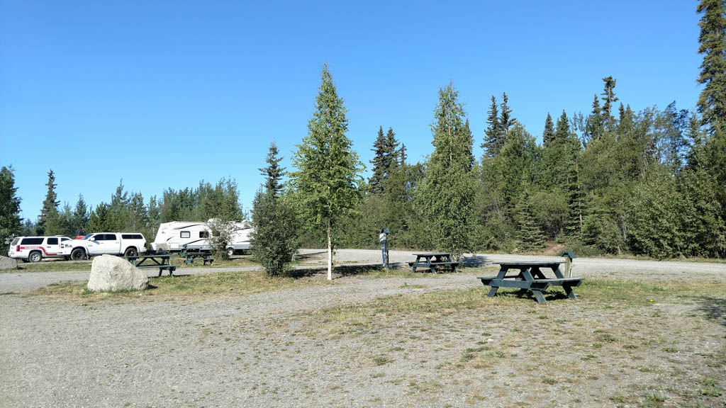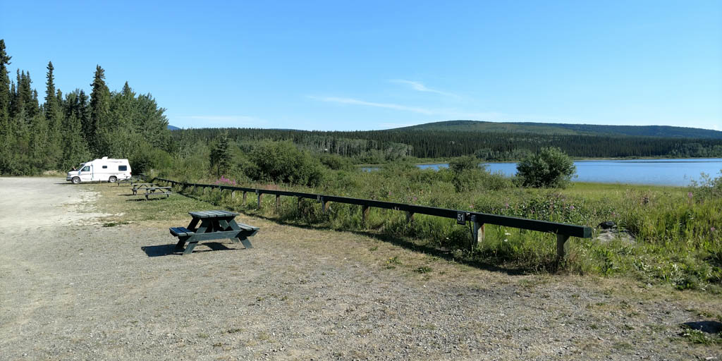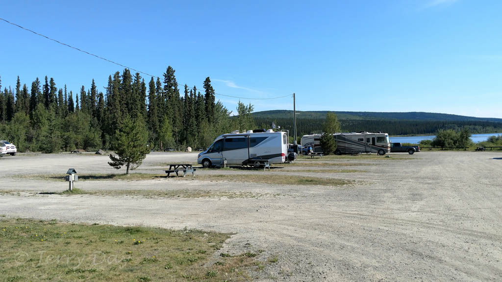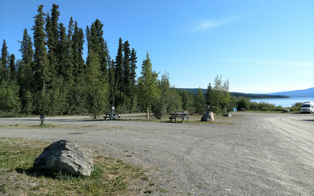 Although the park has nice views of the Nisutlin Bay, the open campground layout does not lend a feeling of isolation. The campground is generally quiet, although noise from the Alaska Highway is noticeable at times.
