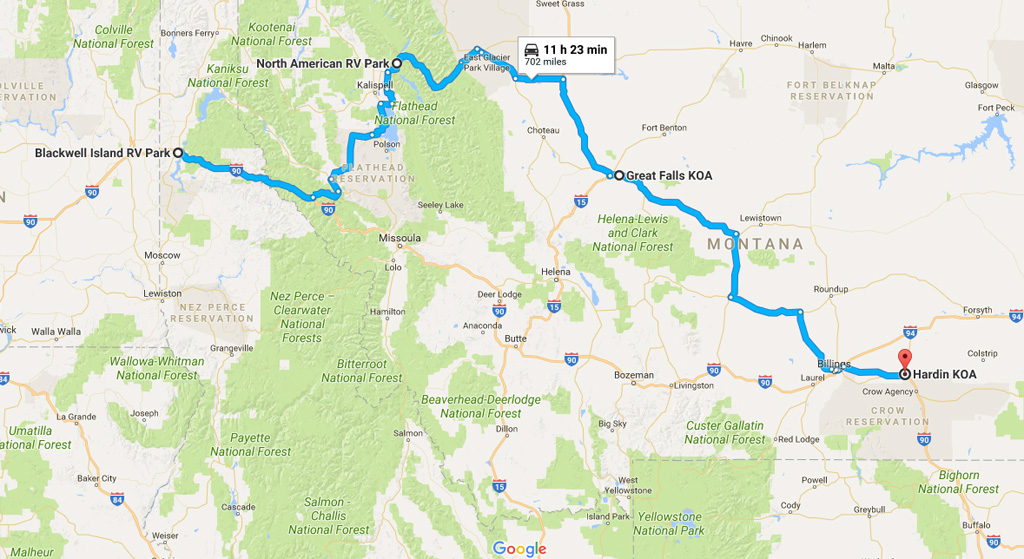 Seemingly before we knew it, our time at Coram was up and we moved on down the road toward Casper, Wyoming, where we planned to view the total solar eclipse. Following highway US-2 eastward, we shortly left the mountains behind and entered the wide open spaces and rolling plains of eastern Montana. Taking our time we stopped at the KOA campgrounds in Great Falls and Hardin, Montana, for three-night and seven-night stays, respectively.