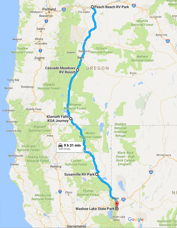 Since we were staying near Bend, Oregon, we took the opportunity to schedule fall maintenance for our fifth-wheel. We felt we would have an easier time getting our rig in for servicing at Bend than at any of the dealerships in So-Cal when we return for the winter. I called to schedule an appointment with Jerry’s RV Services Center about two months earlier, but when I called to confirm the afternoon before, the center had lost the appointment – the person handling the call had made a note, but failed to get the appointment entered on their calendar. To their credit, the service center said to come on down and they would fit me in. Awesome!