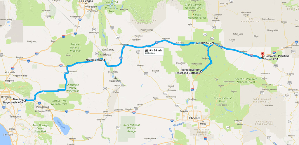 From Flagstaff, we moved on to Holbrook, Arizona, for a week-long stay at the Holbrook / Petrified Forest KOA Journey campground. As per the KOA Journey designation, this is a very basic campground, but very neat and clean. The campground was surprisingly quiet, despite being located just a few hundred yards from busy Interstate 40.