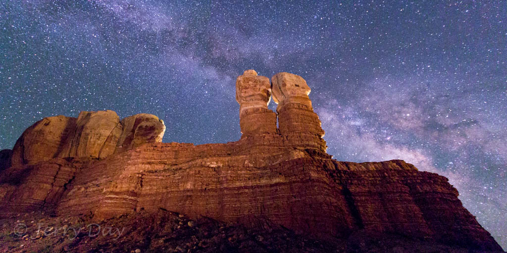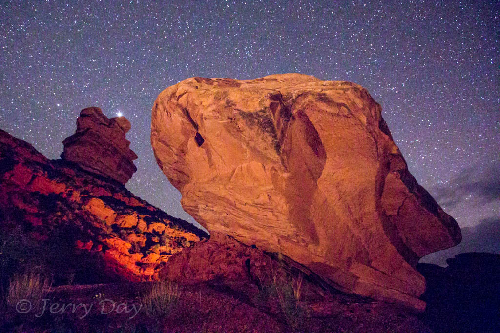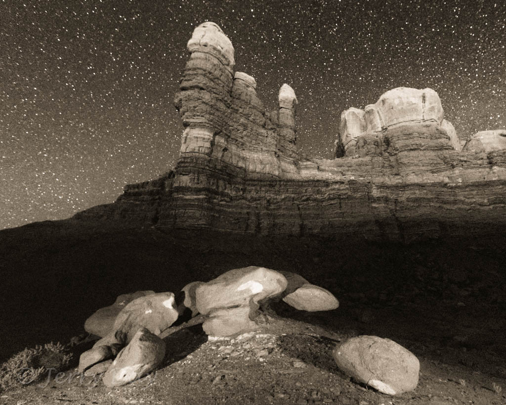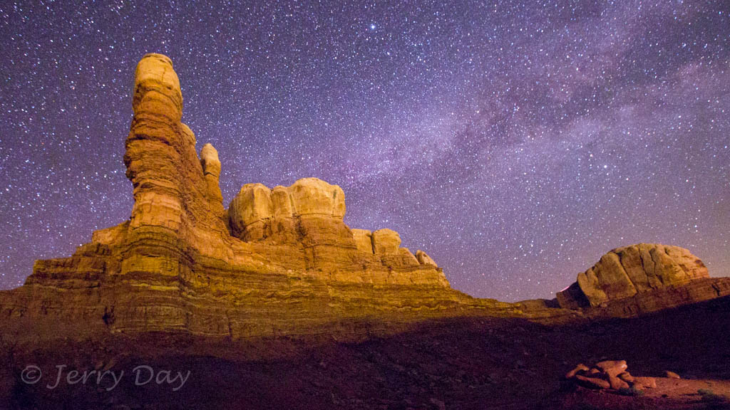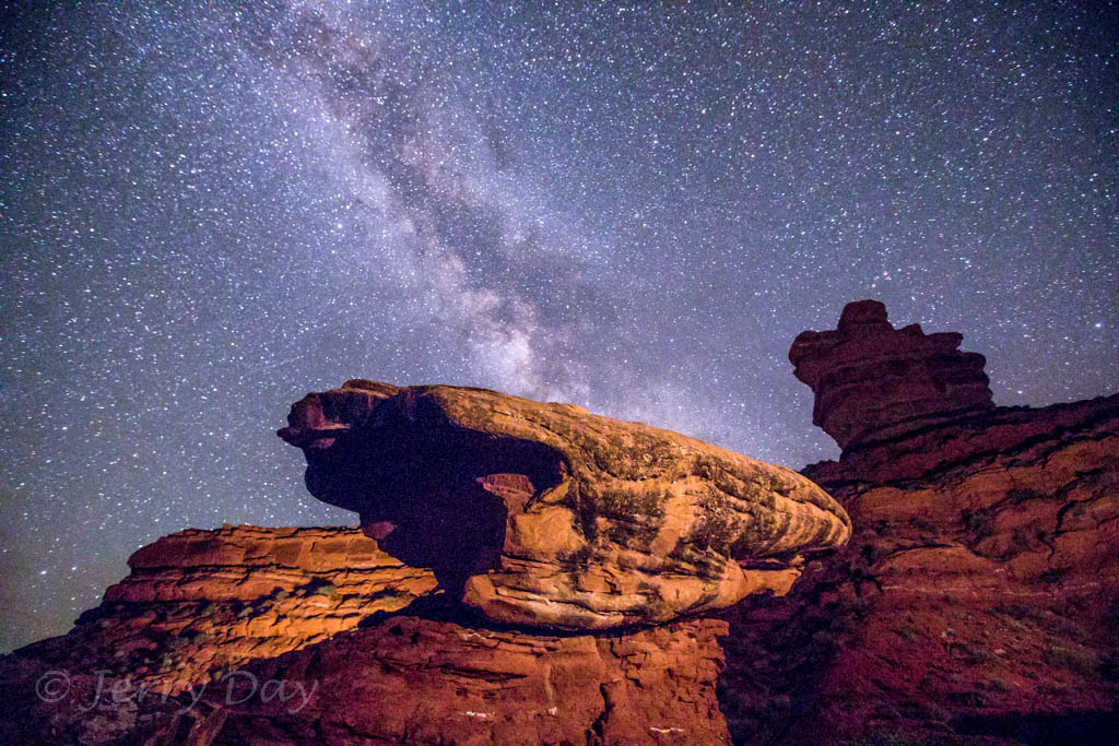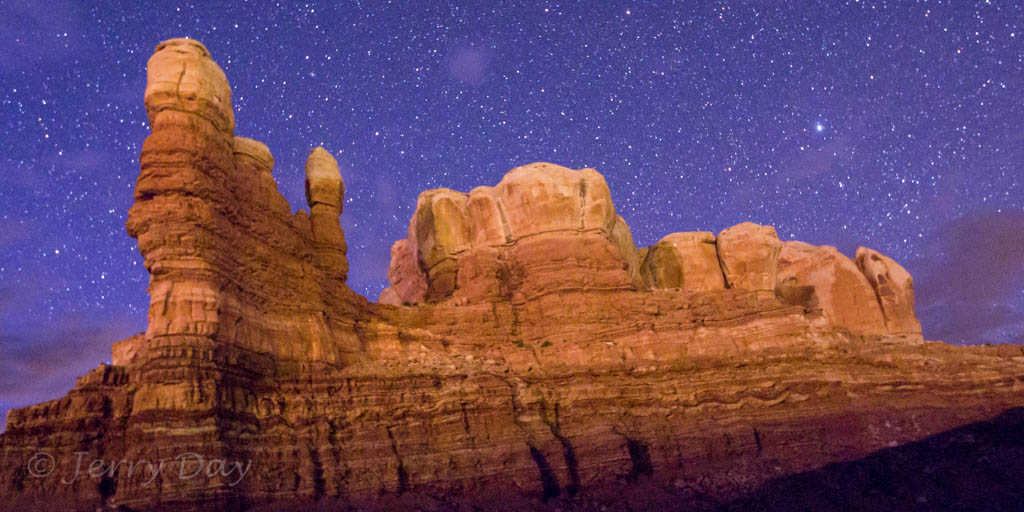 As mentioned above, Paul and I took many photo outings in the area – both day and night. We took several photo trips to the Valley of the Gods and along the Comb Ridge. We also took a hike into the Long Finger Ruins across Butler Wash and into a canyon on the back side of the Comb Ridge. Hiking out after dark was interesting, especially as we passed through a herd of open-range cattle bedded down for the night. The cattle’s eyes glowed eerily in the light of our headlamps from all around. Ever get that feeling of being watched?