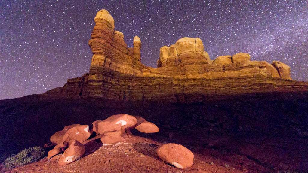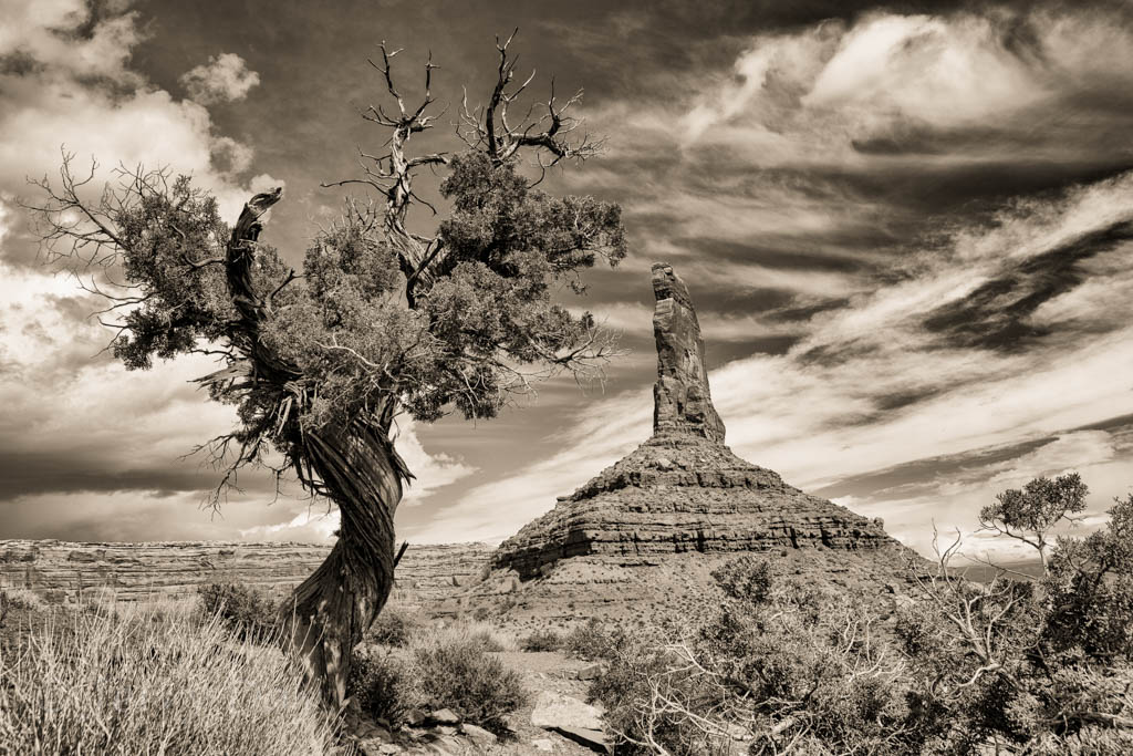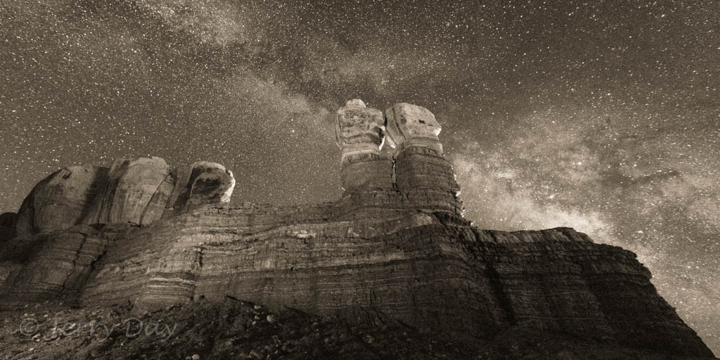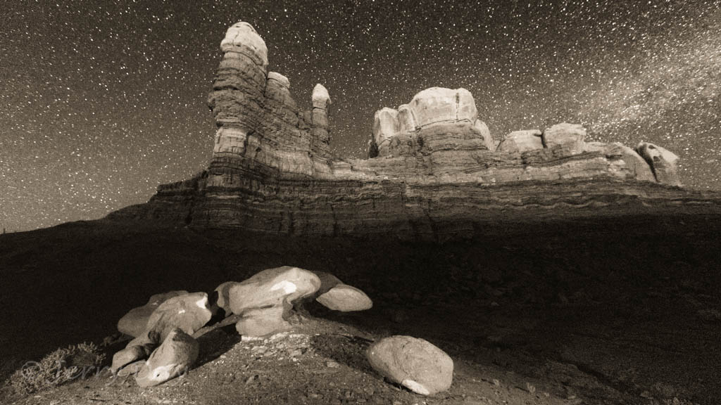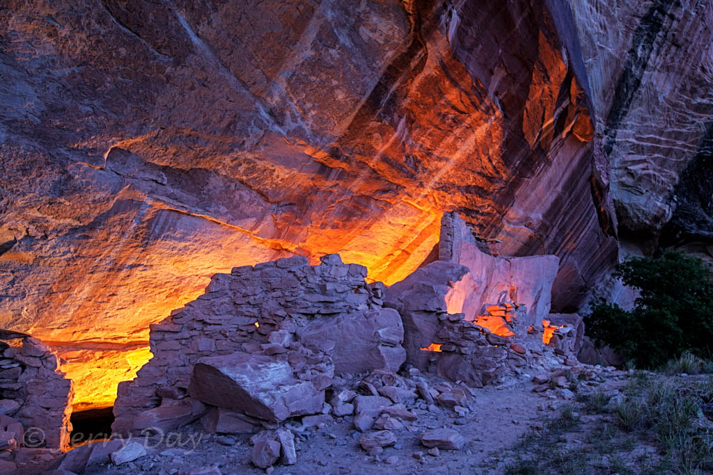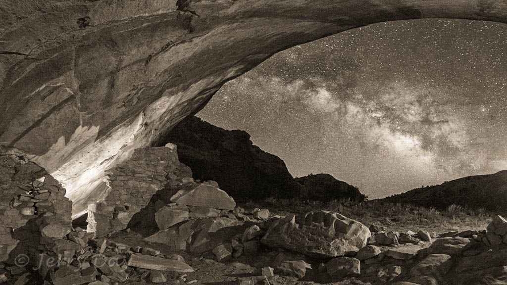 As mentioned above, Paul and I took many photo outings in the area – both day and night. We took several photo trips to the Valley of the Gods and along the Comb Ridge. We also took a hike into the Long Finger Ruins across Butler Wash and into a canyon on the back side of the Comb Ridge. Hiking out after dark was interesting, especially as we passed through a herd of open-range cattle bedded down for the night. The cattle’s eyes glowed eerily in the light of our headlamps from all around. Ever get that feeling of being watched?